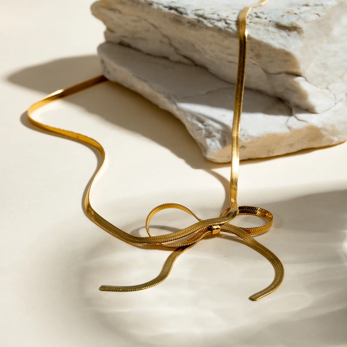 18K Gold Plated Bowknot Snake Chain Necklace – Chic, Minimalist, Waterproof