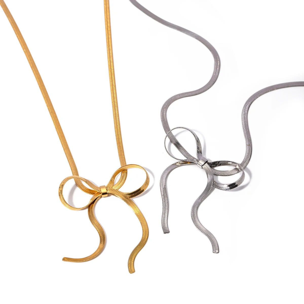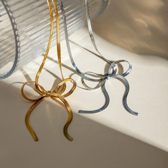 18K Gold Plated Bowknot Snake Chain Necklace – Chic, Minimalist, Waterproof - Silver is backordered and will ship as soon as it is back in stock.