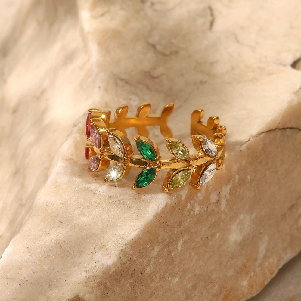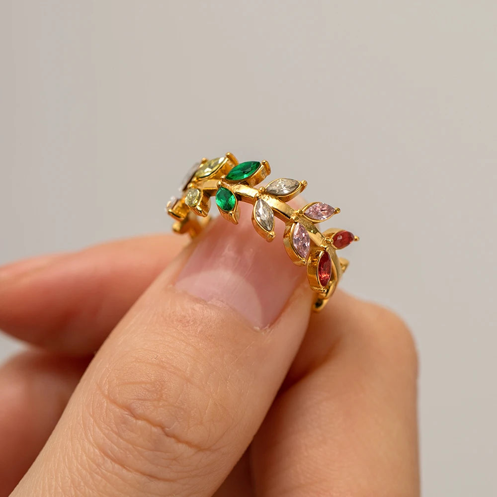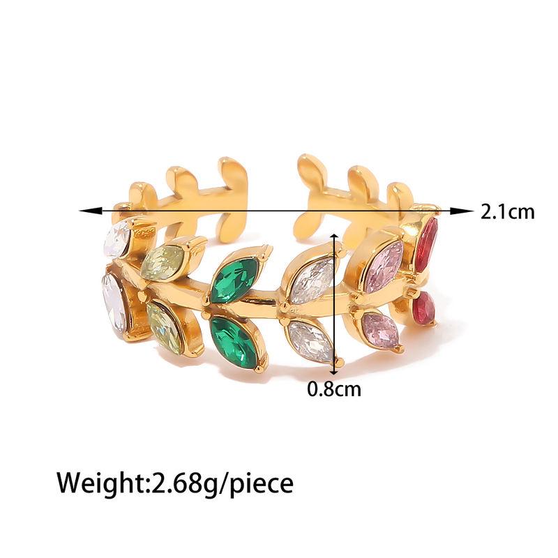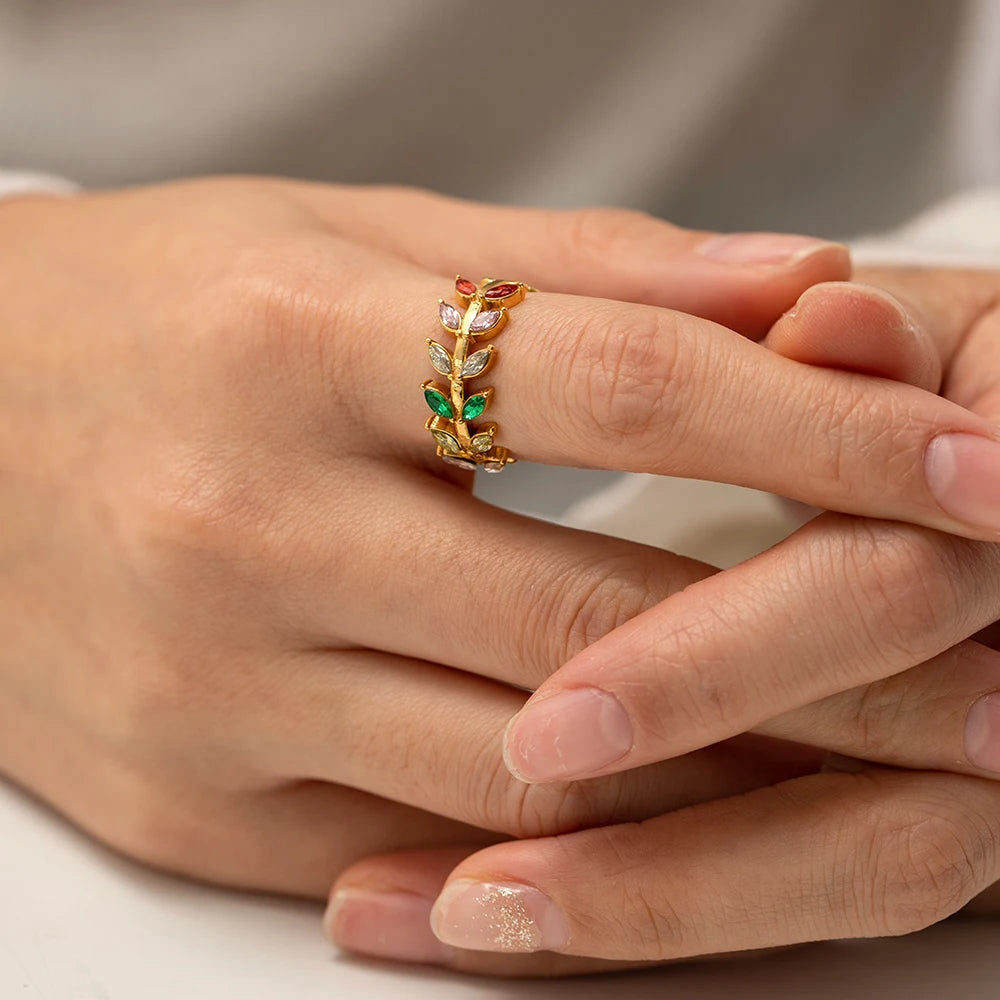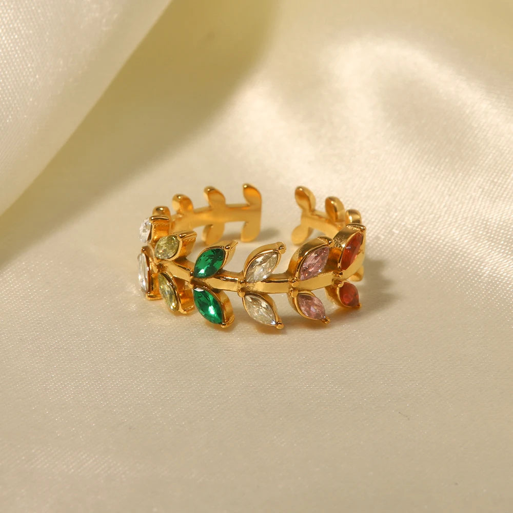 This ring isn’t just another piece of jewelry – it's a true work of art. Its nature-inspired leaf design symbolizes growth and renewal, making it a meaningful accessory for any woman. The 18K PVD gold plating ensures that the color stays vibrant for years, while the cubic zirconia stones reflect light beautifully, giving your look a luxurious touch. Plus, its adjustable opening makes it a perfect fit for any finger size, offering comfort and flexibility.