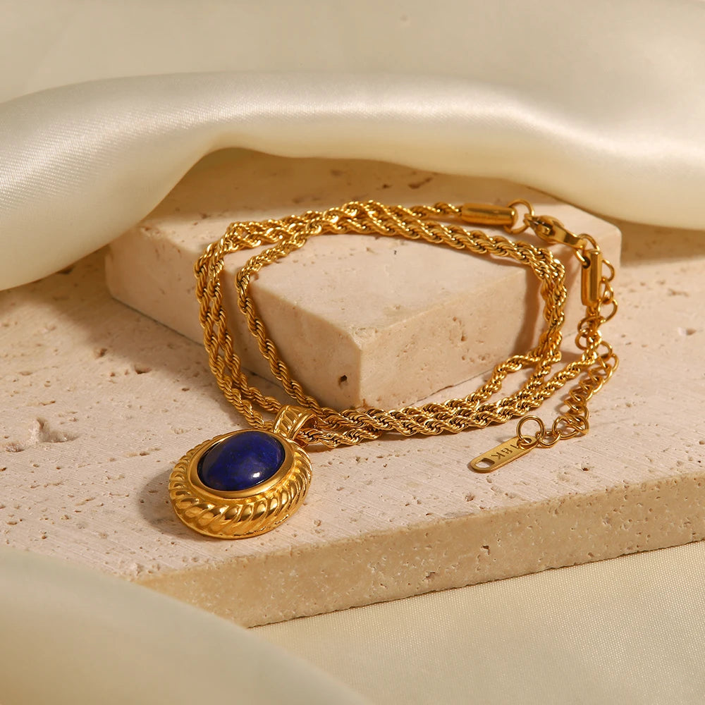 This piece is ideal for all occasions. Whether you're attending a formal party, heading to a special dinner, or simply elevating your work attire, the 18K Gold Plated Stainless Steel Rope Chain Necklace with Lapis Pendant is versatile enough for any setting. Its adjustable length makes it easy to layer with other necklaces or wear alone as a statement piece.Why You’ll Love It