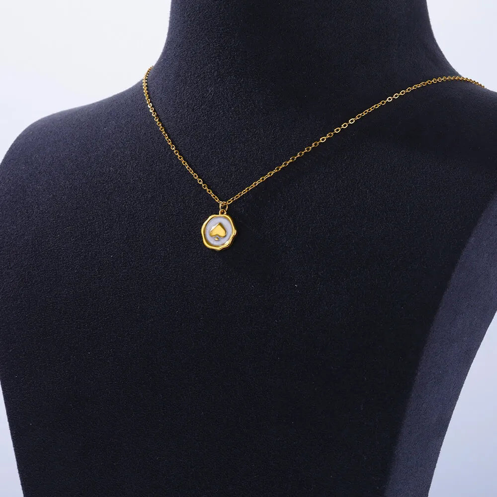 Elevate your style with the stunning Ace of Spades Gold Heart Pendant Necklace, a must-have accessory for women who love to stand out. Designed for 2024 fashion trends, this necklace combines a delicate white heart charm with the timeless appeal of gold-colored stainless steel, creating an accessory that is both modern and classic. Whether you're dressing up for a special occasion or adding a touch of elegance to your everyday look, this necklace makes the perfect statement piece.Features and Details