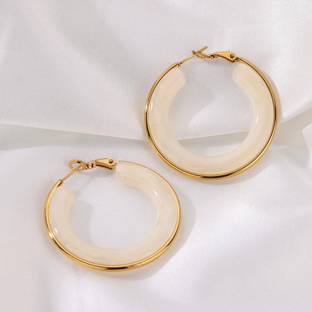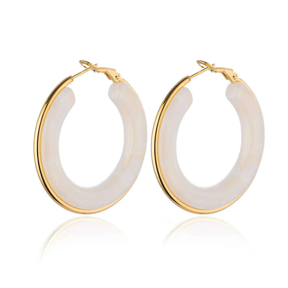 Acrylic Gradient Hoop Earrings for Women - Trendy Stainless Steel Round Earrings