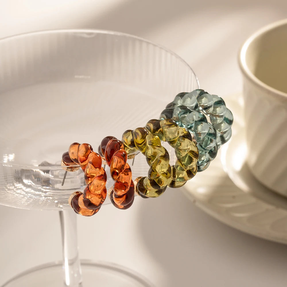 These resin twist hoop earrings are not only trendy but also versatile, making them the perfect accessory for a variety of occasions. Wear them to a casual day out, a romantic dinner date, or even a formal event. Their subtle yet eye-catching design makes them ideal for both daytime and nighttime looks.
