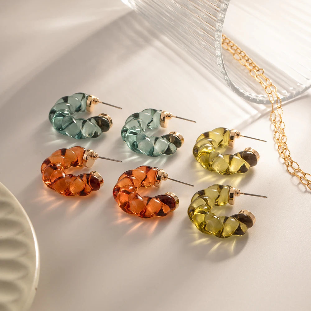 Chic Resin Twist Hoop Earrings - Stylish C-Shaped Earrings