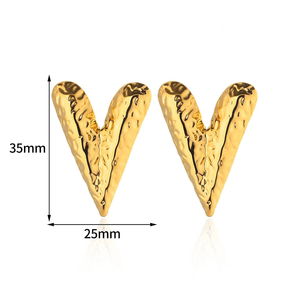 Elegant Gold Heart Stud Earrings - Stainless Steel Trendy Jewelry