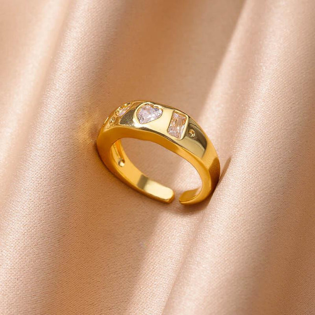 Whether you're looking for the perfect wedding band, a couple's ring, or simply a trendy accessory for a special night out, this **Gold Cubic Zirconia Heart Ring** is the perfect choice. Its sleek and sophisticated design makes it ideal for any occasion, while the heart-shaped zirconia symbolizes love and elegance. Don't miss out on this must-have 2024 trend—add it to your jewelry collection today!