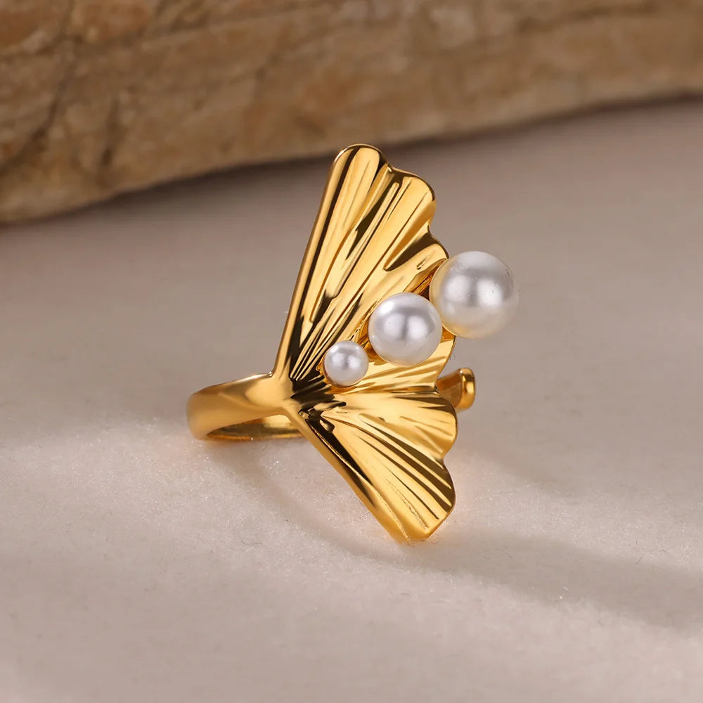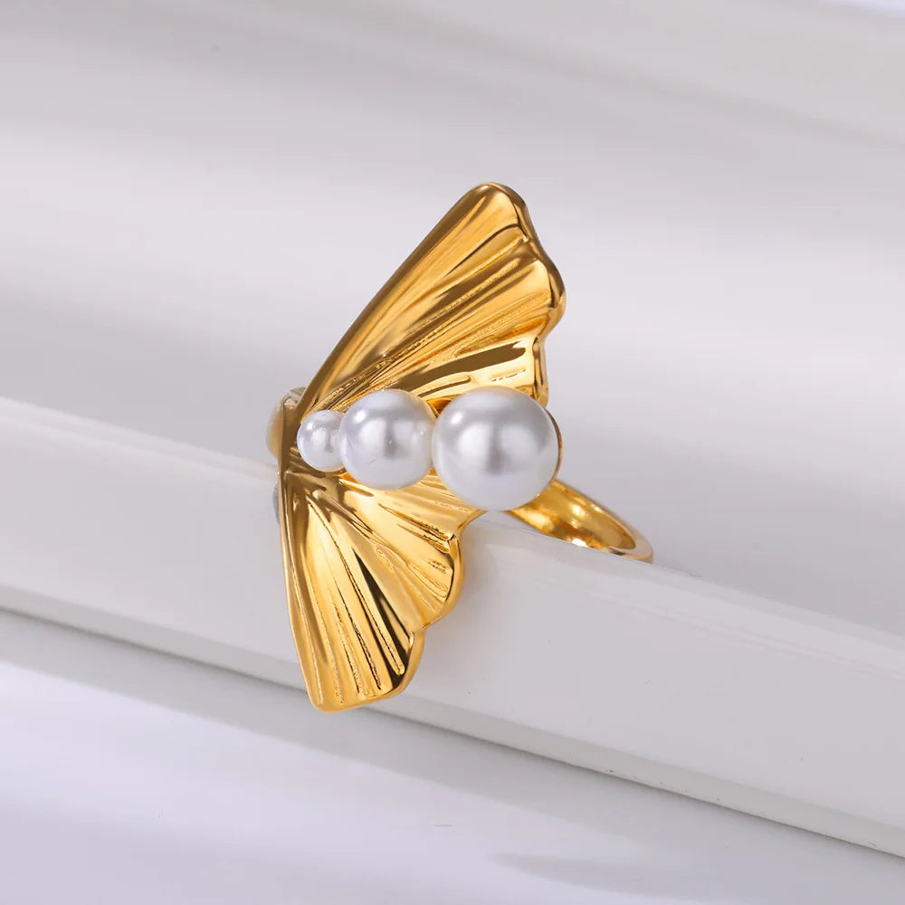 Mermaid Tail Stainless Steel Ring with Imitation Pearls – Luxury Women's Jewelry