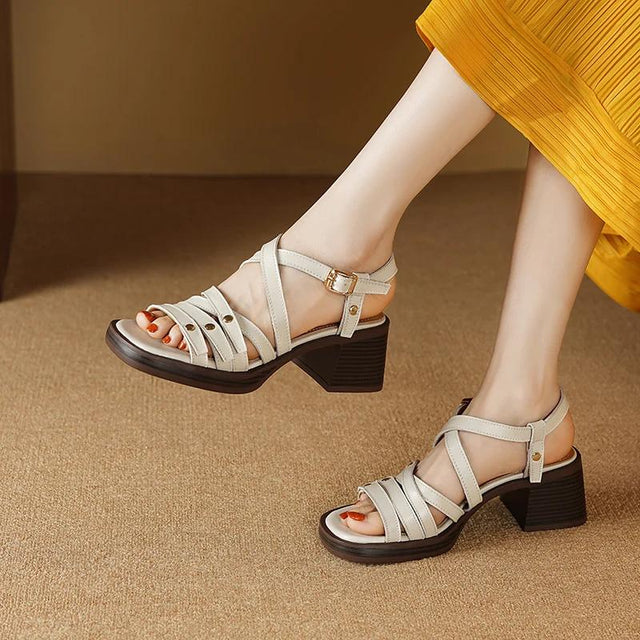 What sets these sandals apart is their commitment to quality and style. The genuine sheepskin and leather craftsmanship not only provide a superior look and feel but also ensure they remain a staple in your wardrobe. The unique combination of retro design with contemporary features like the square heel and open toe silhouette makes these sandals a must-have for any fashion enthusiast. Don't miss out on the perfect blend of style, comfort, and durability. Order your pair of Open Toe Chunky Heel Leather Sandals today and step into a world of elegance and comfort!