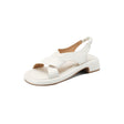 Our sandals are crafted from high-quality split leather, ensuring durability and a premium feel. The unique square heel design not only adds to the aesthetic appeal but also provides stable support, making them suitable for extended wear. The adjustable back strap and elastic band closure ensure a snug and secure fit, adapting perfectly to your foot's shape. With a modest heel height of 4.5cm, these sandals offer the perfect balance of elevation and comfort.- Material: Premium split leather upper with genuine leather lining for ultimate comfort.