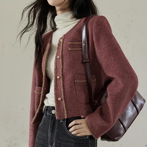 2024 Autumn Winter Plaid Tweed Short Jacket for Women - L / Red is backordered and will ship as soon as it is back in stock.