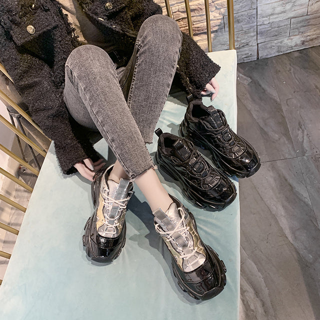 Round Toe Platform Lace-Up Patent Leather Women'S Shoes