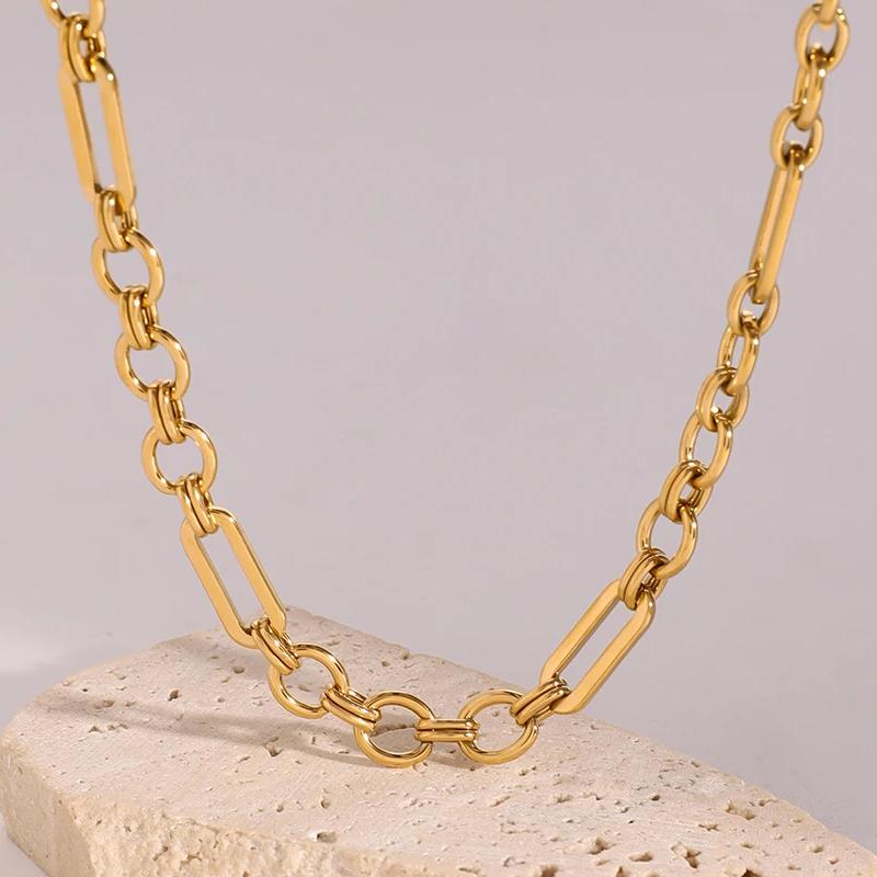 Enhance your look with the sleek and timeless appeal of this 18K gold-plated paperclip clasp necklace. Crafted from high-quality stainless steel, this elegant chain offers both sophistication and resilience, making it perfect for daily wear or special occasions. The paperclip design lends a minimalist charm, adding a modern touch to your style without overwhelming your look. Whether you're attending a wedding, party, or anniversary, this necklace is sure to complement your outfit effortlessly.