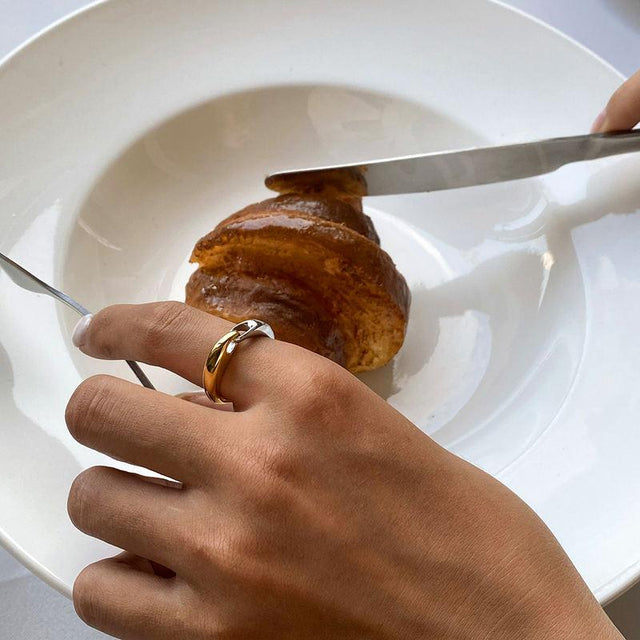 • Colorblock Design: Featuring a chic gold and silver colorblock pattern, this ring adds a touch of contemporary elegance to any outfit.