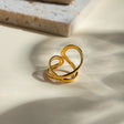 Adopte el encanto de la sofisticación moderna con nuestro anillo de acero inoxidable bañado en oro de 18 quilates con ondas irregulares. Su diseño distintivo y su calidad duradera lo convierten en un accesorio imprescindible para cualquier persona a la moda. ¡Compre ahora para agregar esta impresionante pieza a su colección y disfrute de la combinación de encanto contemporáneo y elegancia clásica!