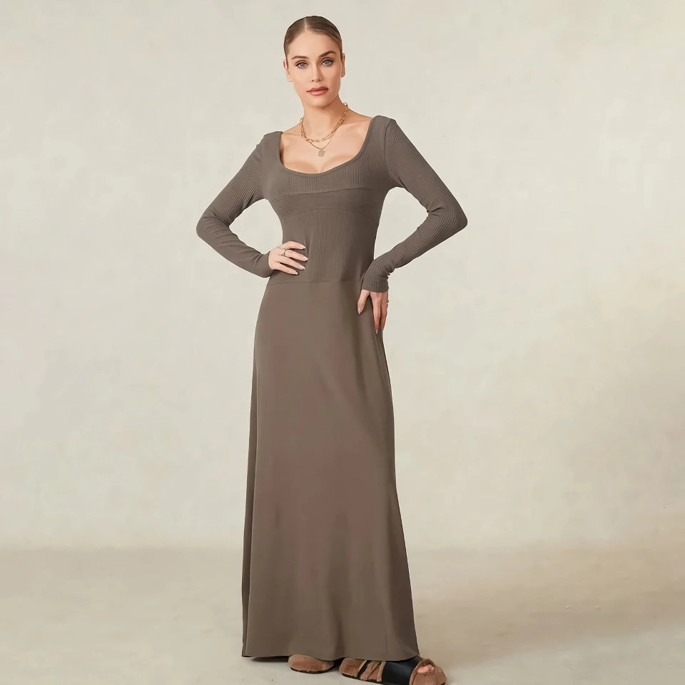 Elegante vestido largo de punto de otoño para mujer con escote cuadrado