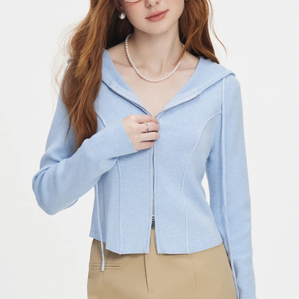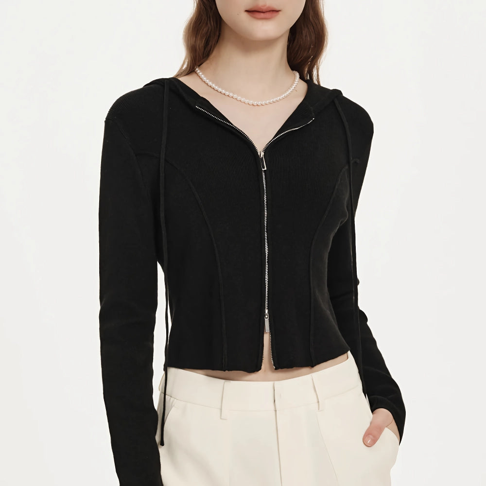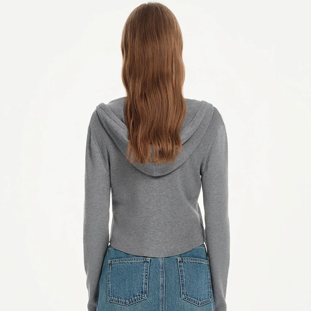 Disfruta de la comodidad y el estilo con nuestra sudadera lisa con capucha tipo cárdigan. Esta versátil prenda informal está diseñada para que luzcas elegante y te sientas cómoda durante las estaciones de primavera y otoño. Este cárdigan corto de cintura alta, confeccionado con una mezcla de lana, viscosa y poliamida, presenta un clásico punto de espiga que añade un toque de sofisticación a cualquier atuendo. Ya sea que vayas a un brunch informal o a una agradable caminata nocturna, esta sudadera con capucha es tu opción ideal para lucir una elegancia sin esfuerzo.