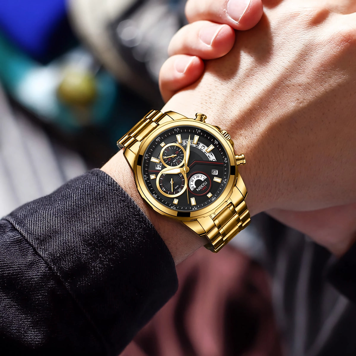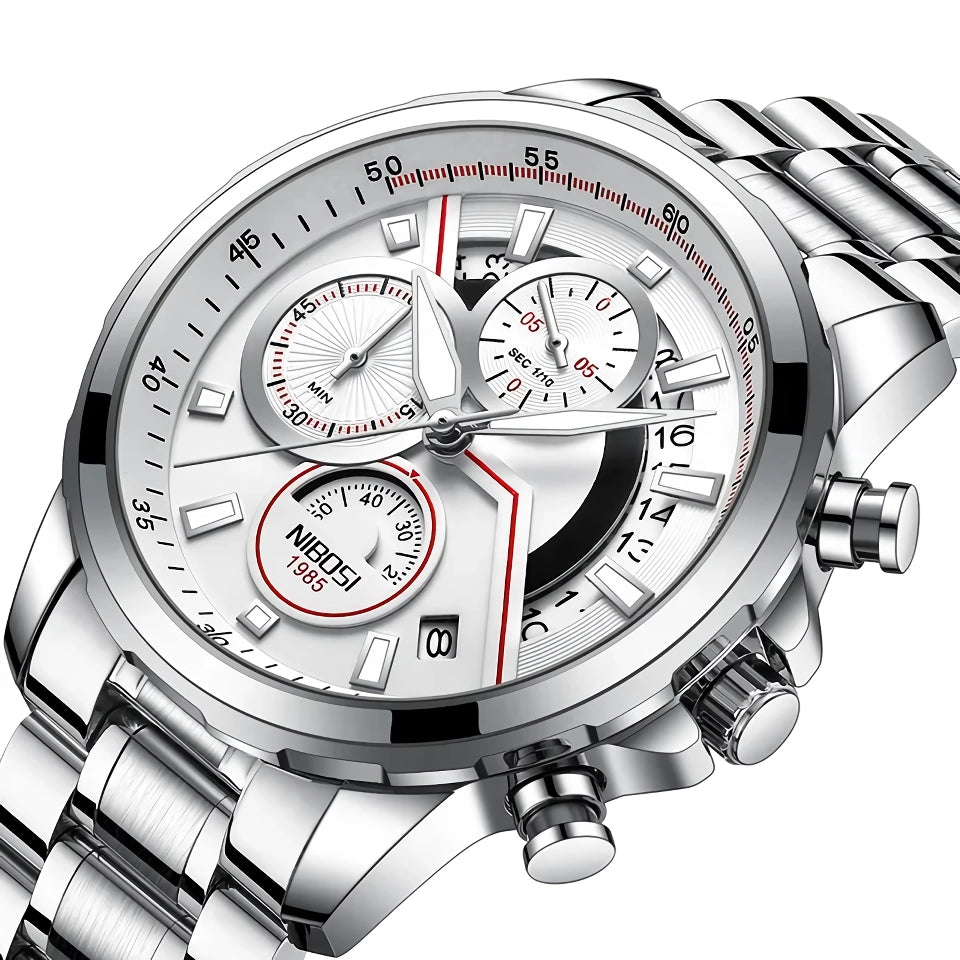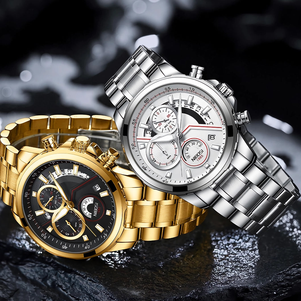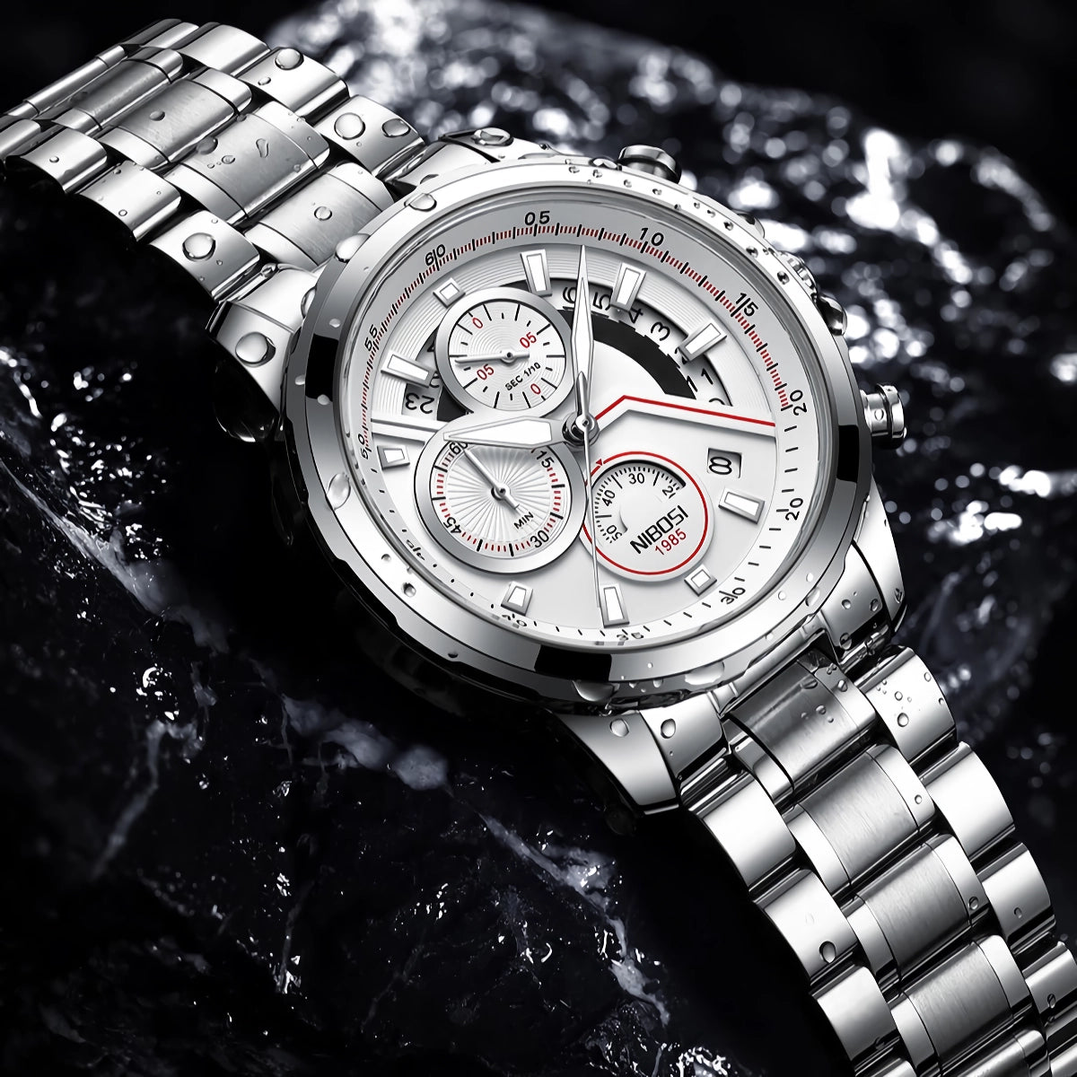 Nuestro reloj cronógrafo de lujo para hombre cuenta con una variedad de características que lo distinguen del resto. Fabricado con materiales de alta calidad y tecnología avanzada, este reloj está diseñado para durar e impresionar.- Material de la correa: acero inoxidable