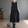 Vestido de pana de largo medio con bolsillos y sin mangas para mujer, estilo artístico, de talla grande