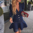 Vestido ceñido con volantes y mangas abullonadas con escote en V profundo - Azul / S está agotado y se enviará tan pronto como vuelva a estar disponible.