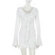 Vestido de manga larga con volantes y punto ajustado a la moda para mujer
