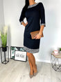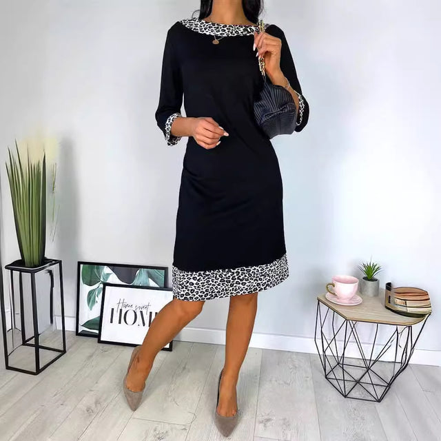 Vestido informal ajustado con cuello redondo y manga 34 y diseño con estampado de leopardo