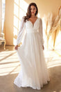 Vestido sexy de gasa con escote en V profundo y manga larga - Blanco / S está agotado y se enviará tan pronto como vuelva a estar disponible.