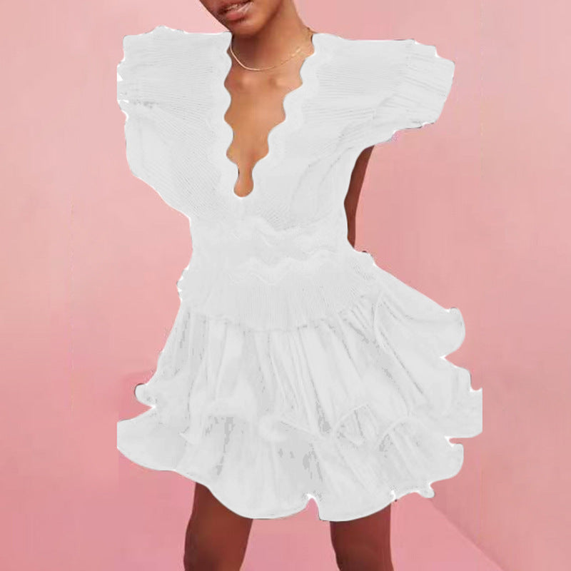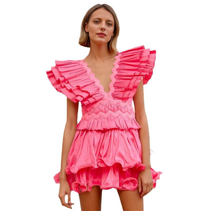 Vestido estilo pastel con mangas volantes y volantes para mujer