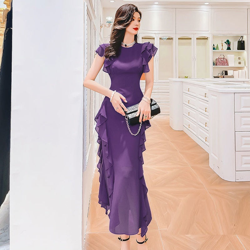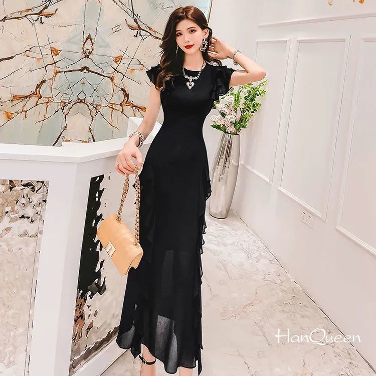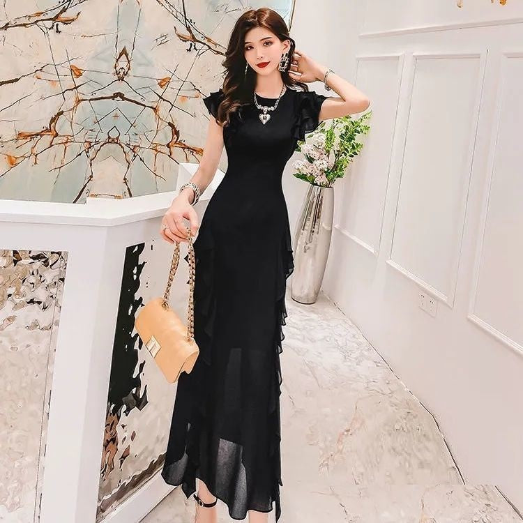 Vestido ajustado a la cintura con volantes, vestido de moda de lujo asequible para mujer