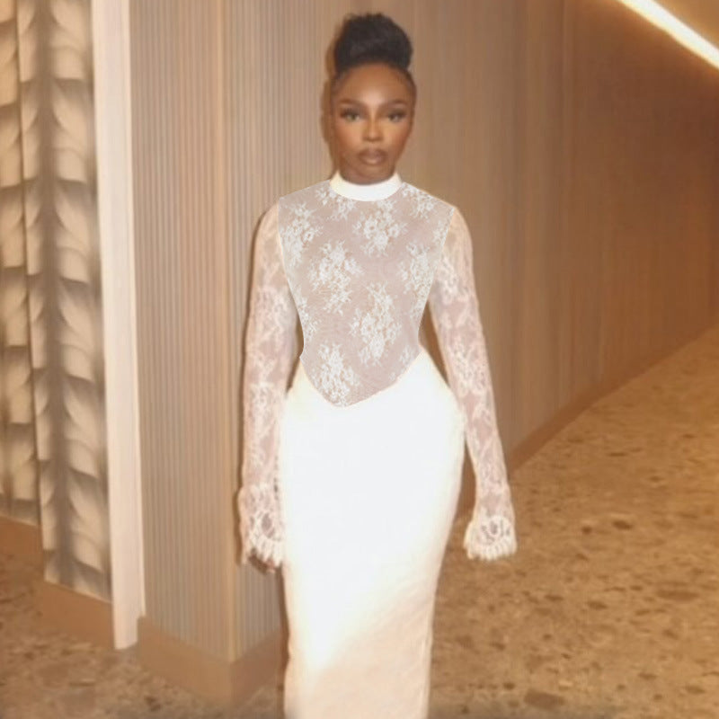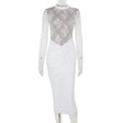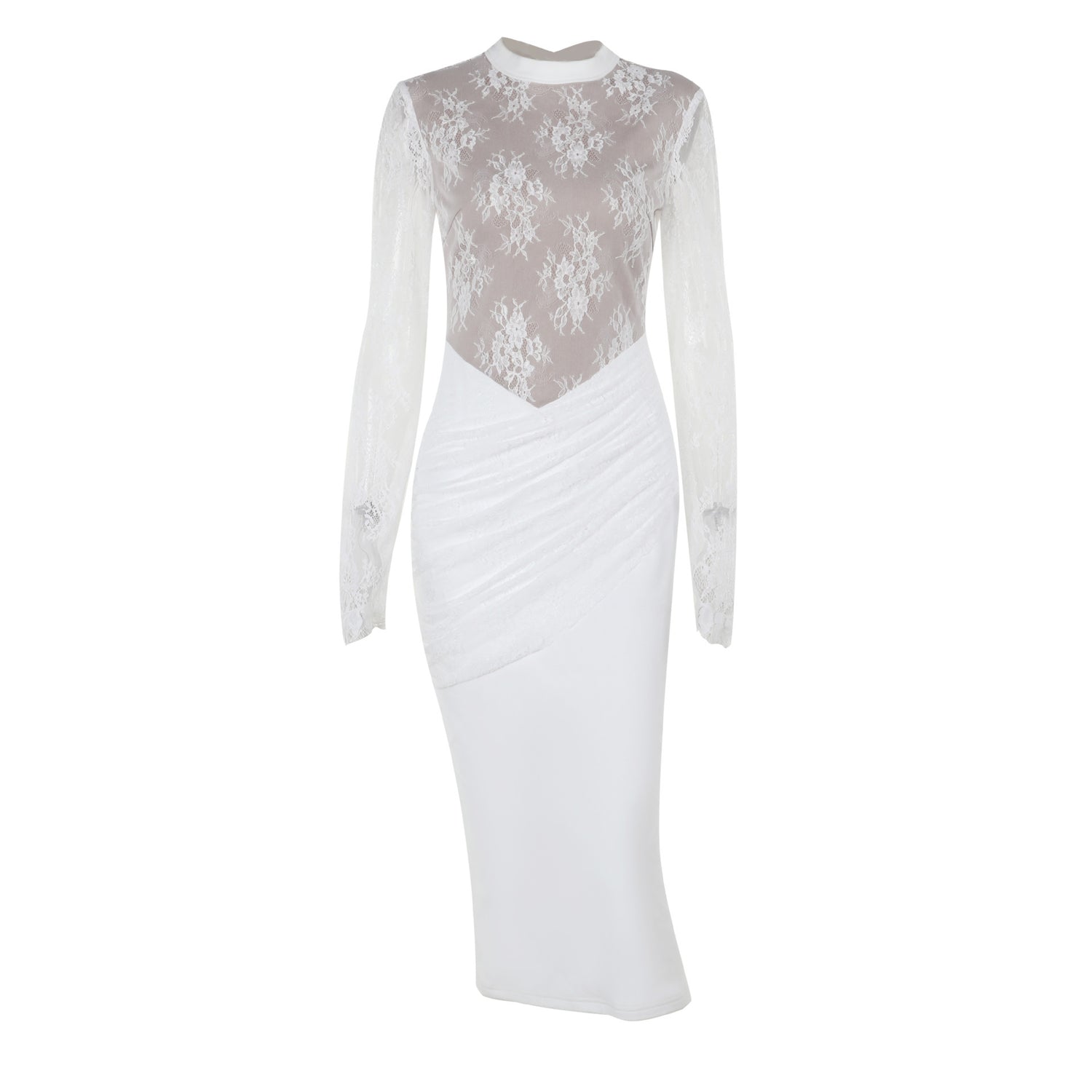 Vestido ajustado de encaje de manga larga para mujer - Blanco / S está agotado y se enviará tan pronto como vuelva a estar disponible.