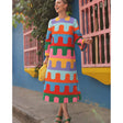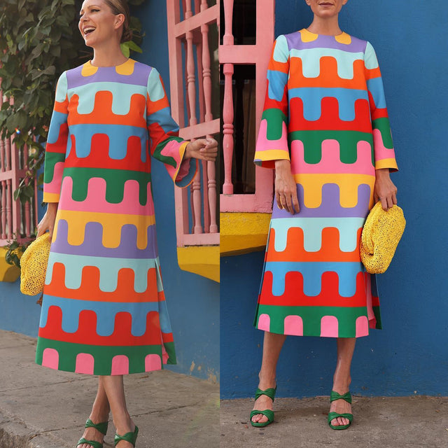Vestido de manga 34 con posicionamiento dividido - Impresión / S está agotado y se enviará tan pronto como vuelva a estar disponible.