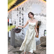 Vestido de satén de dos colores ajustado a la cintura sexy