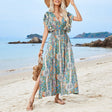 Vestido de manga corta con volantes, estampado de rayón, escote en V y espalda descubierta