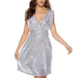 Vestido de mujer con lentejuelas, escote en V, sin mangas y largo medio - Plata / S está agotado y se enviará tan pronto como vuelva a estar disponible.