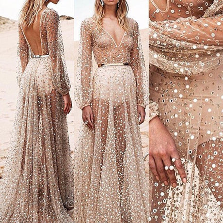 Precio normal €57,95 EURPrecio unitario /AgotadoVestido de noche largo con lentejuela...