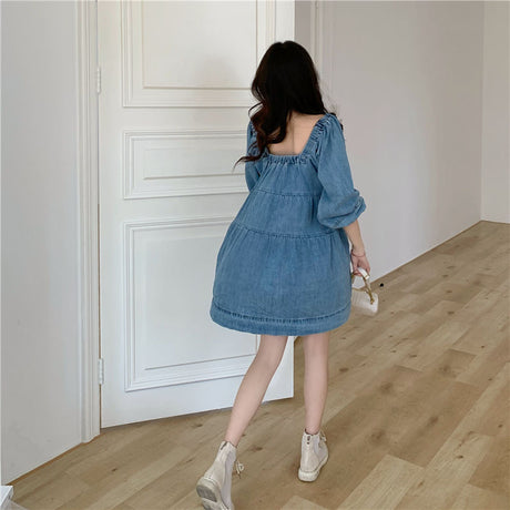 Precio normal €142,95 EURPrecio unitario /AgotadoVestido azul y cuello cuadrado para n...