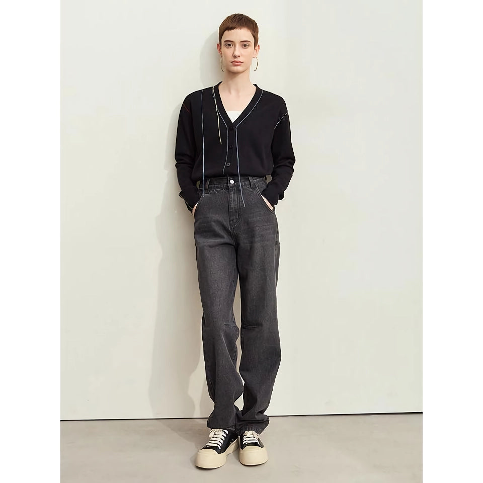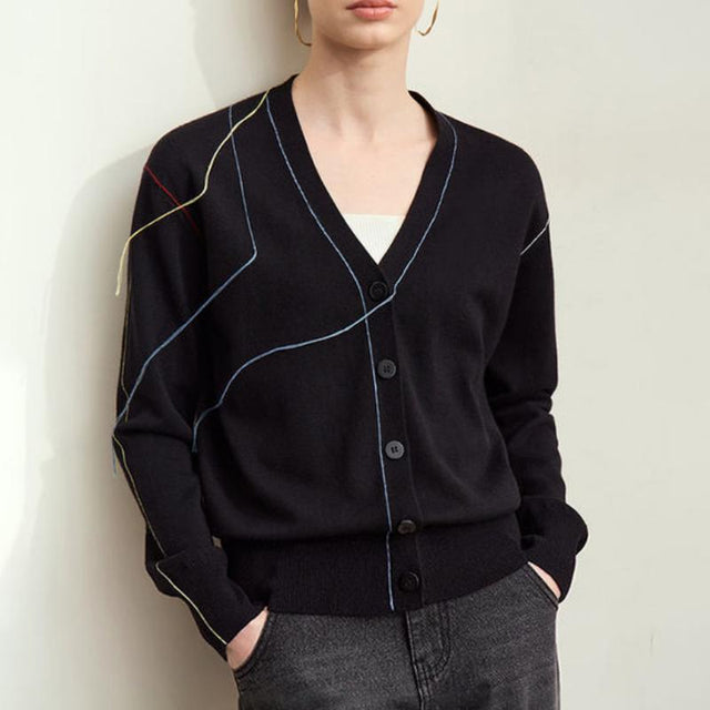 Cárdigan de punto minimalista: top holgado de otoño con escote en pico y flecos