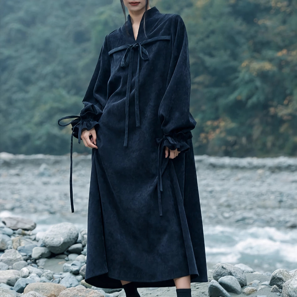 Adopte la elegancia atemporal con el vestido retro de pana de corte A