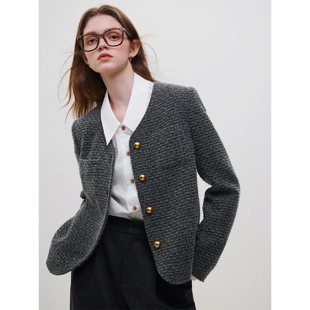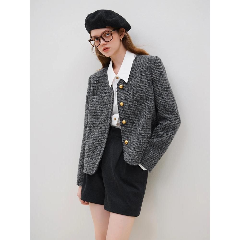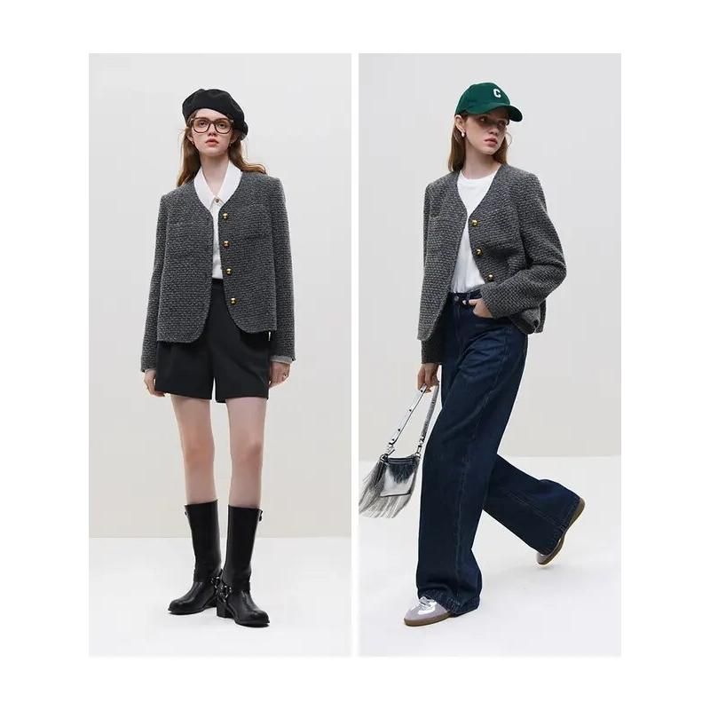Abraza los días fríos del invierno con nuestra elegante chaqueta de tweed de lana de invierno para mujer. Esta chaqueta es la combinación perfecta de estilo francés clásico y comodidad moderna, diseñada para realzar tu guardarropa. Diseñado para la mujer contemporánea, es una pieza básica que combina la sofisticación con la practicidad cotidiana.