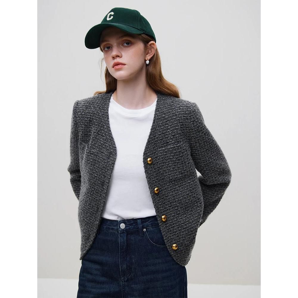 Elegante chaqueta de tweed de lana de invierno para mujer