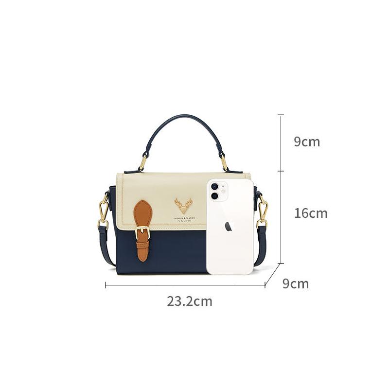 Elegante bolso de hombro con solapa de piel dividida para mujer - Beige/azul marino está agotado y se enviará tan pronto como vuelva a estar disponible.