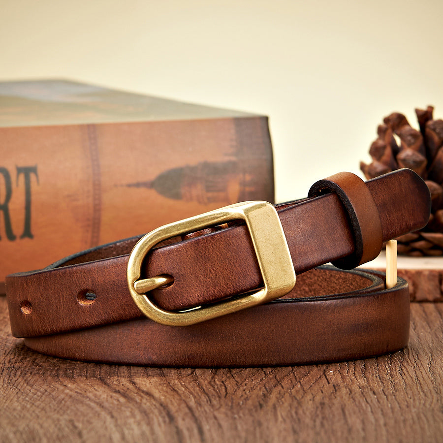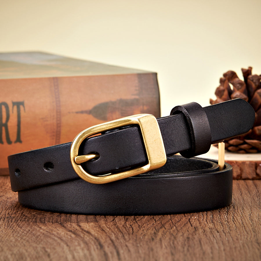 Cinturón fino de piel auténtica de 1,8 cm para mujer con hebilla de cobre