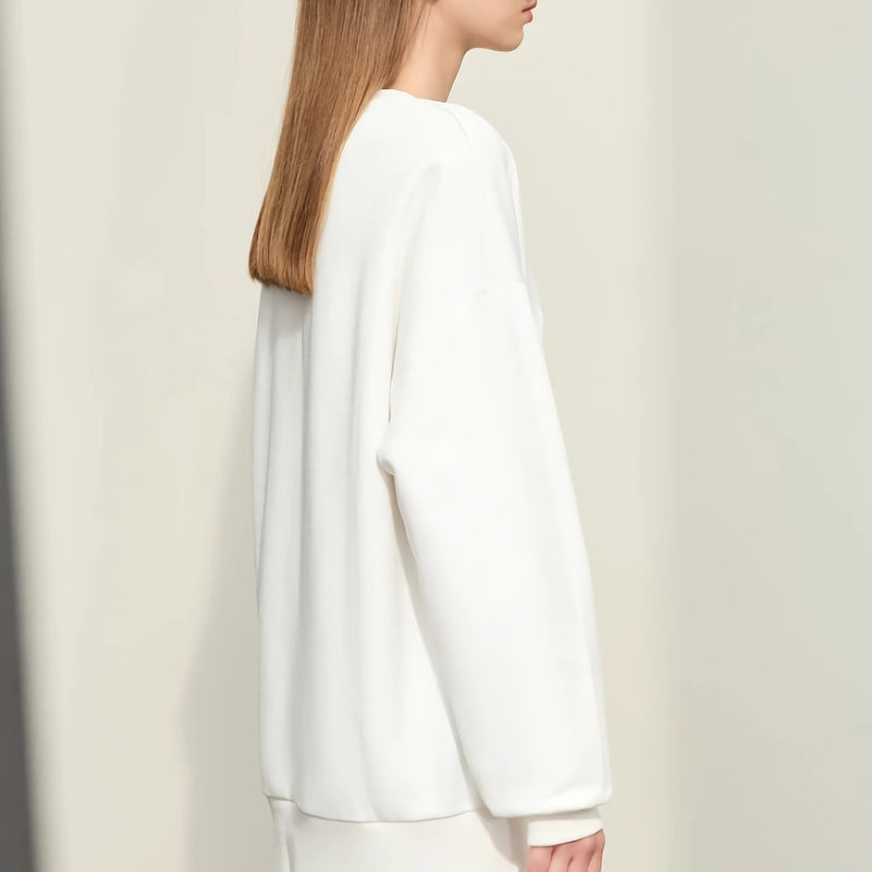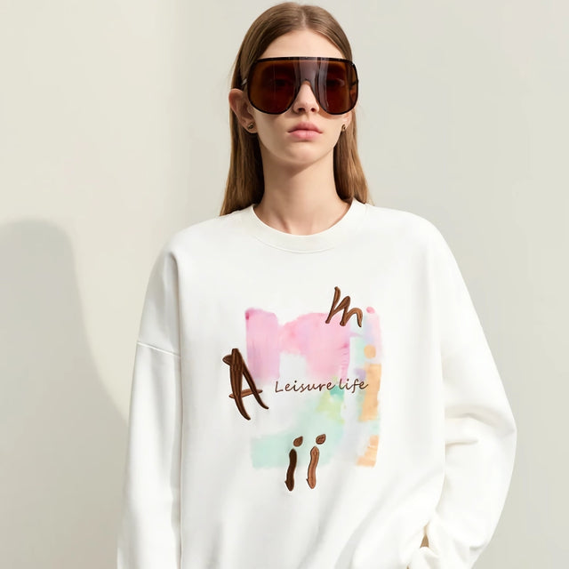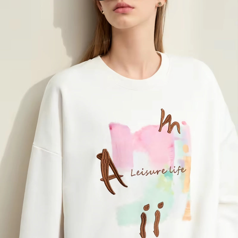Lo que distingue a esta sudadera es su combinación de diseño minimalista y confección detallada. El bordado estampado añade un elemento sutil pero llamativo, lo que la convierte en algo más que una prenda básica. Las mangas caídas y el corte holgado proporcionan un estilo relajado y garantizan la máxima comodidad. Ya sea que la combines con jeans, leggings o una falda, esta prenda realza tu estilo sin esfuerzo.