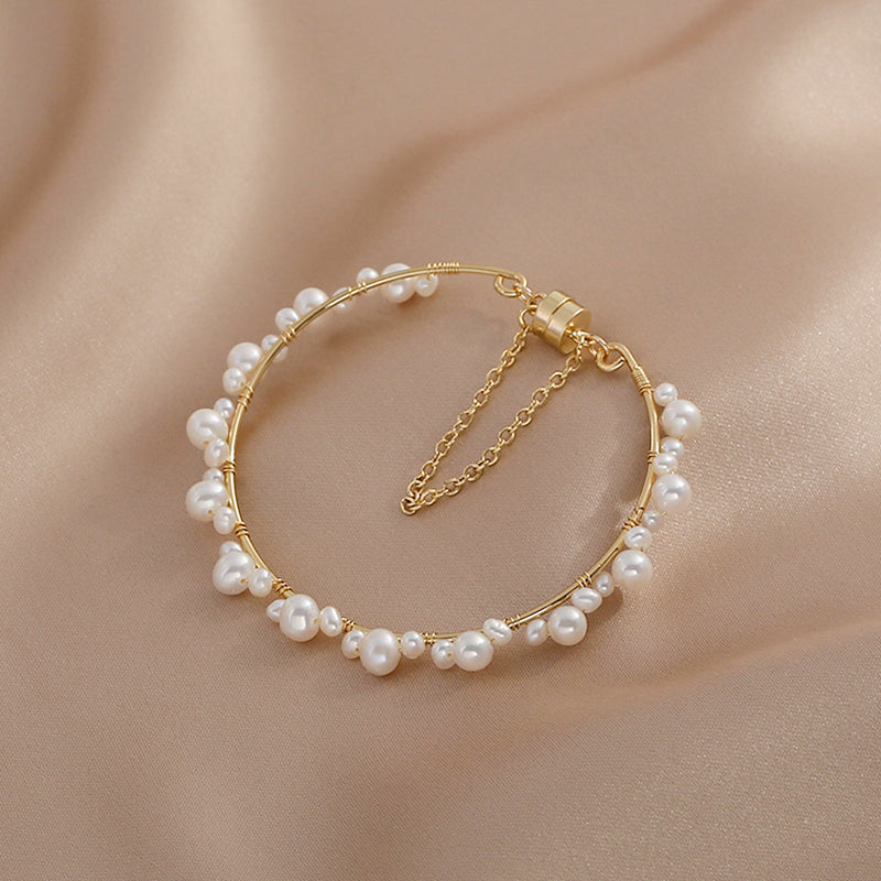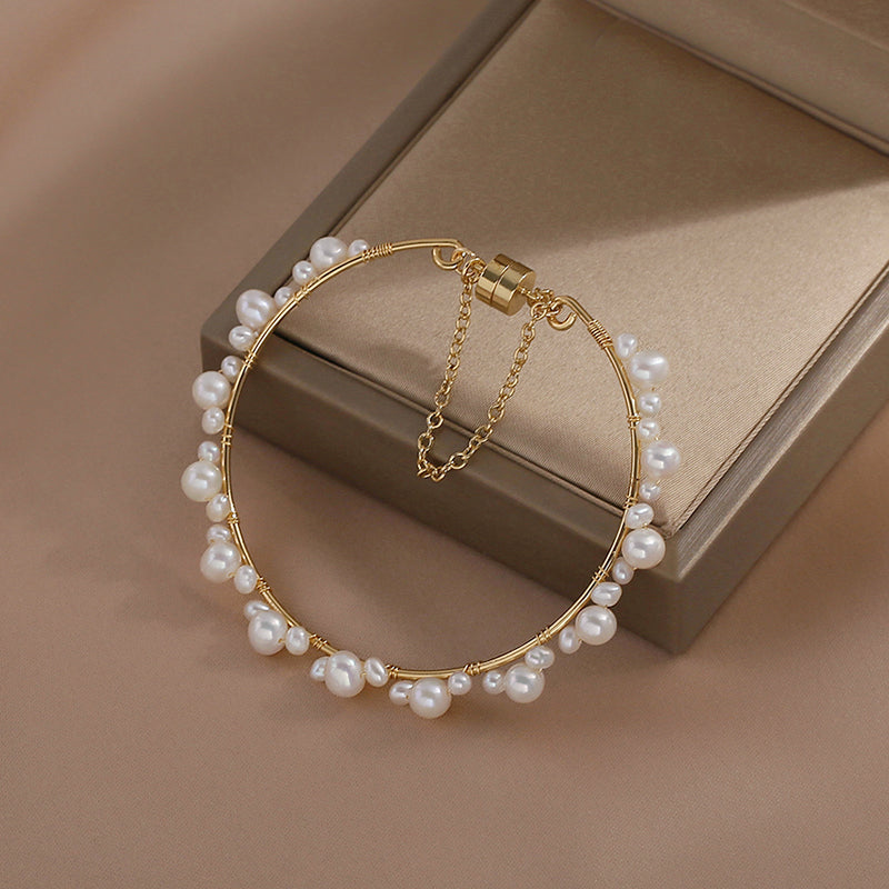Brazalete tejido de perlas de agua dulce para mujer - Pulsera de perlas está agotado y se enviará tan pronto como vuelva a estar disponible.