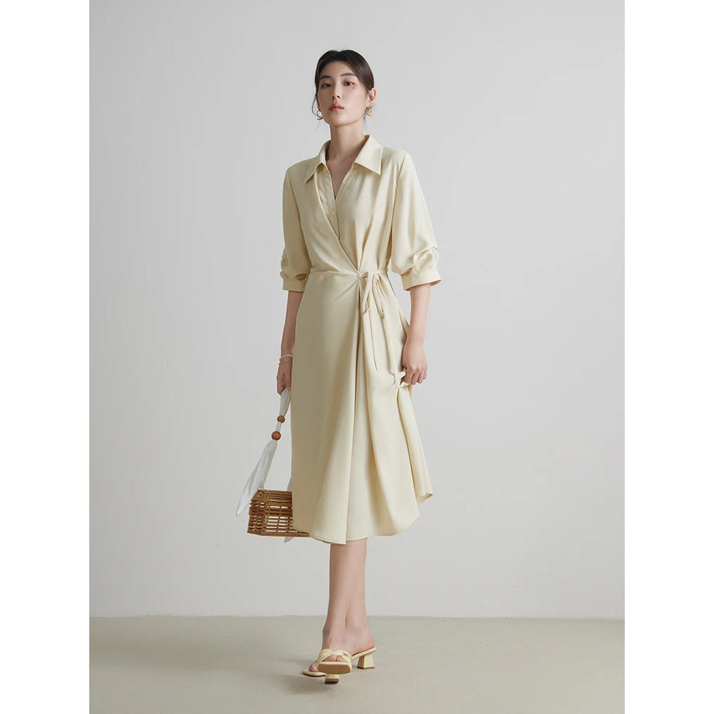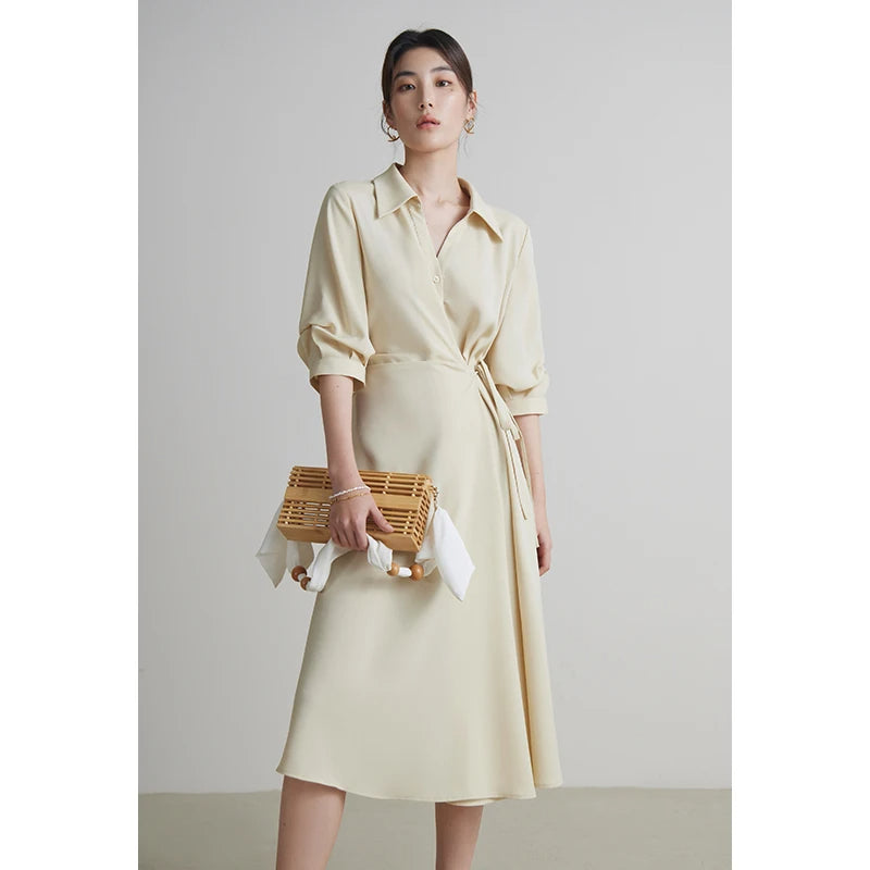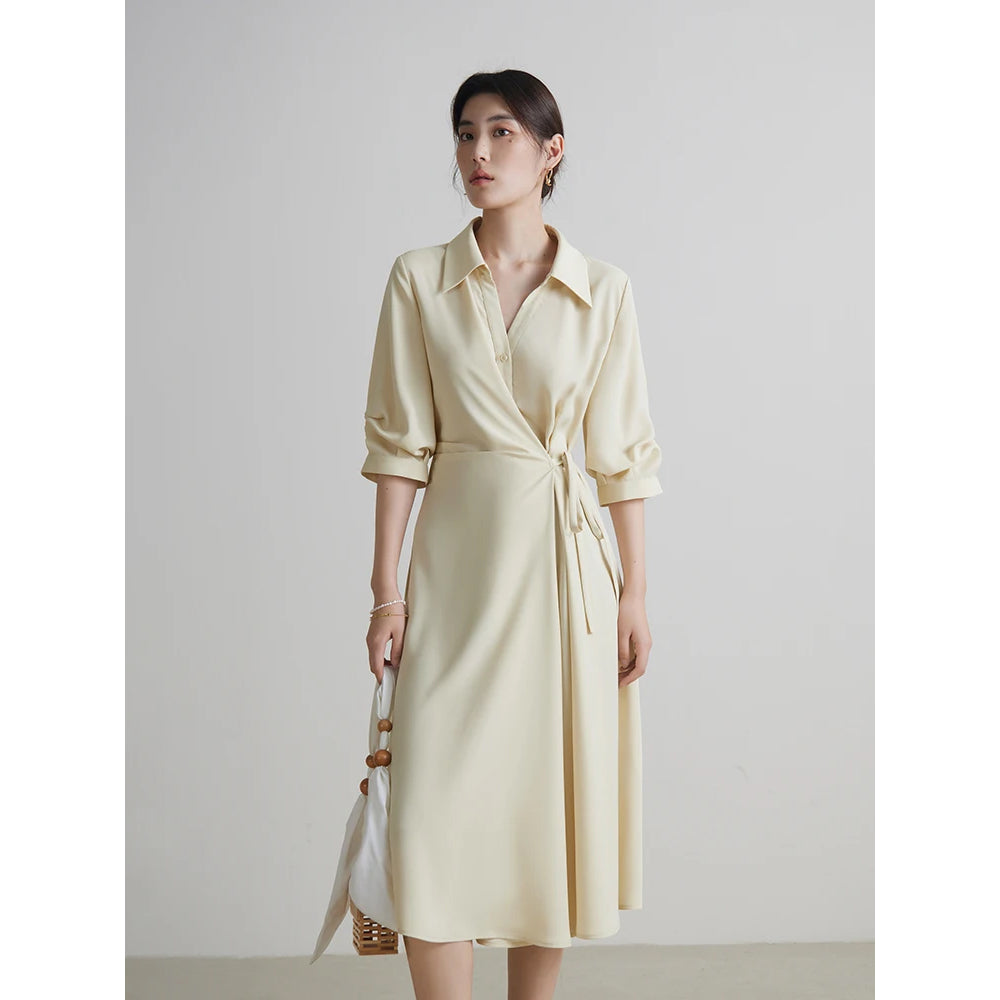 Lo que hace que este vestido sea realmente especial es su capacidad de combinar practicidad y elegancia. El tejido de poliéster de alta calidad no solo es cómodo, sino también fácil de cuidar, lo que lo hace ideal para mujeres ocupadas. El cuello vuelto y el detalle de la cintura con cordones realzan el vestido, dándole un toque único y moderno. Disponible en dos colores versátiles, este vestido está diseñado para adaptarse a cualquier estilo personal y ocasión.