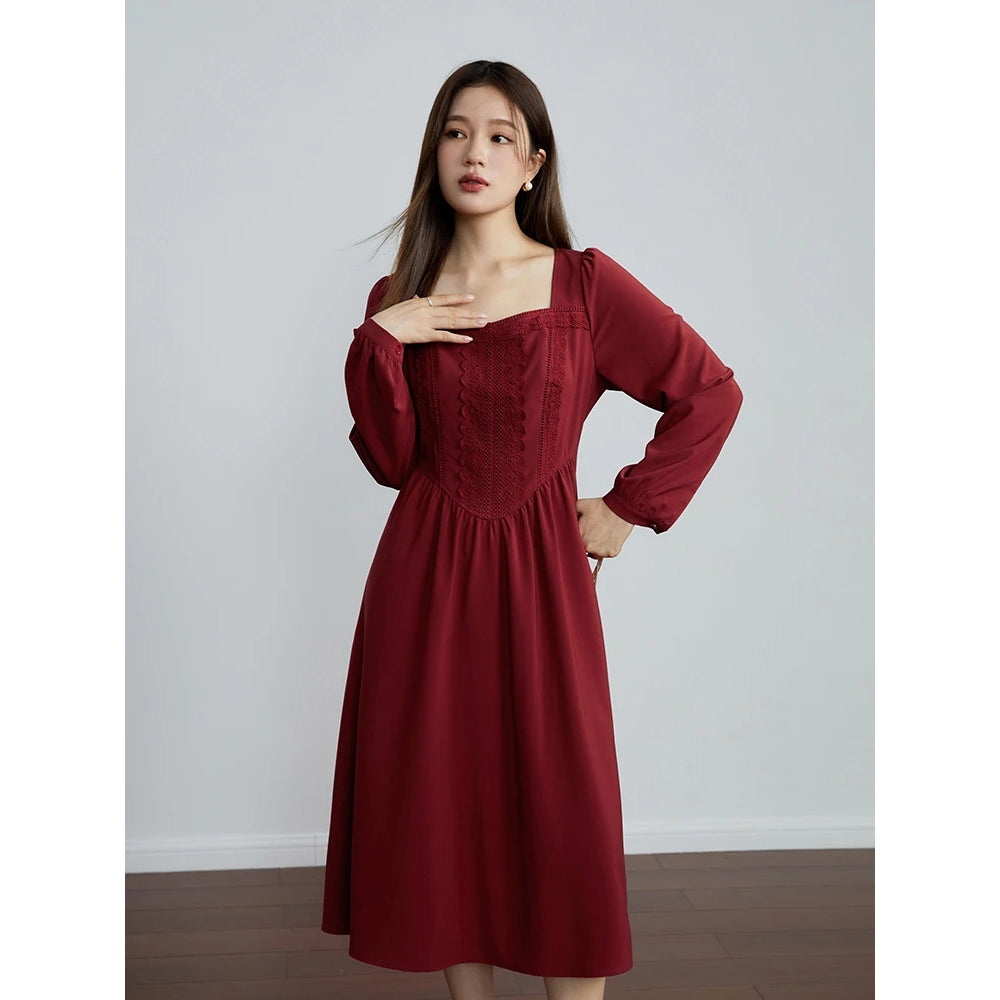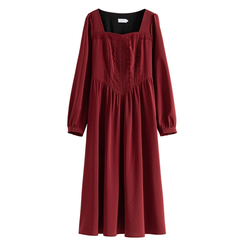 Adéntrate en un mundo de encanto vintage con este impresionante vestido retro de cuello cuadrado y manga larga en rojo. Diseñado para la mujer moderna que ama un toque de elegancia clásica, este vestido es perfecto para el otoño. Su largo hasta la mitad de la pantorrilla y su silueta en forma de A crean un flujo elegante, lo que lo convierte en una pieza versátil para diversas ocasiones, desde entornos de oficina hasta reuniones especiales.Características elegantes que realzan tu estilo