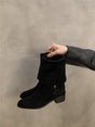 Botas de motociclista largas de mezclilla estilo western para mujer - Negro / 35 está agotado y se enviará tan pronto como vuelva a estar disponible.
