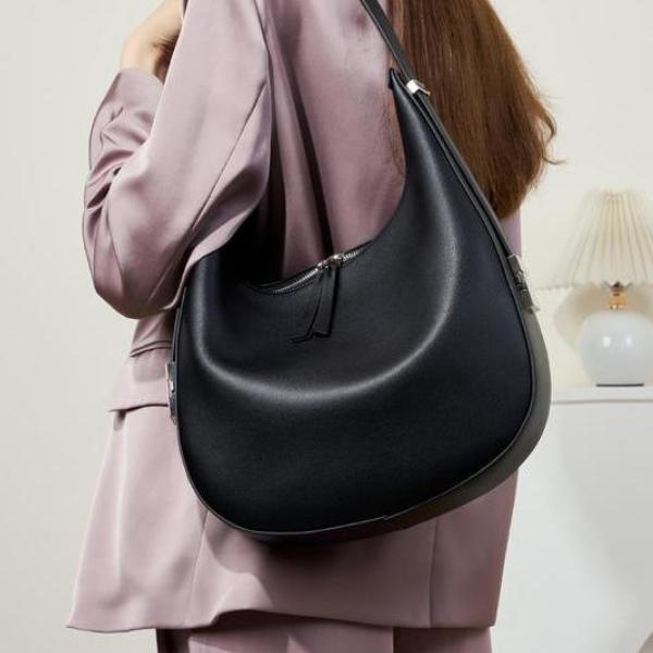Bolso bandolera de piel suave de lujo: bolso Moon de gran capacidad para mujer - 33 x 10 x 27 cm / Negro está agotado y se enviará tan pronto como vuelva a estar disponible.