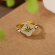 Juego de pendientes de trébol de jade hetiano chapado en oro de plata de ley con colgante de anillo