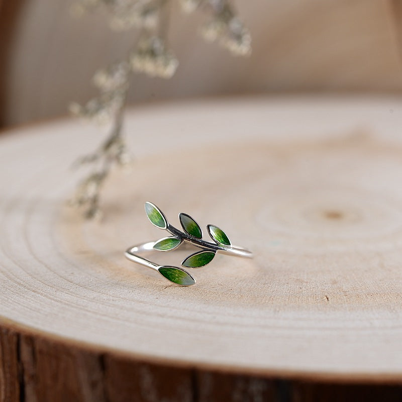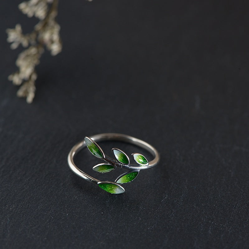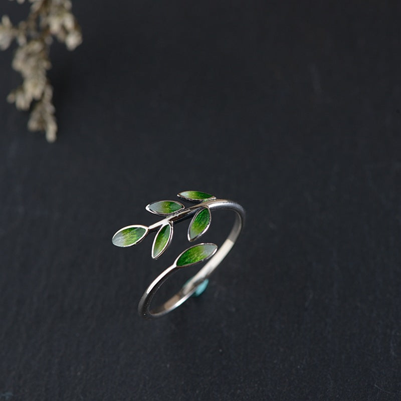 Anillo de plata con forma de hoja de árbol simple de moda para mujer