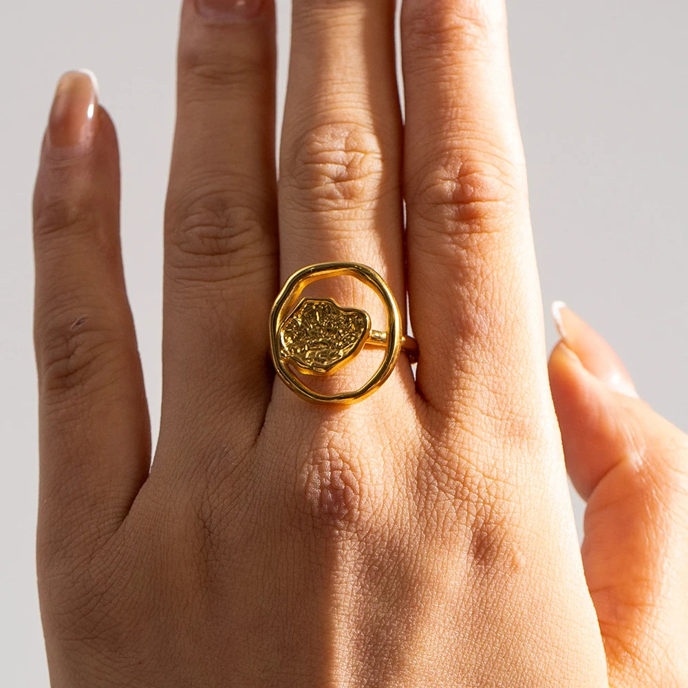 Presentamos nuestro anillo de acero inoxidable tallado hueco y chapado en oro de 18 quilates, un tesoro de diseño sofisticado y atractivo duradero. Elaborada con precisión, esta exquisita pieza combina el encanto vintage con la elegancia moderna, lo que la convierte en la elección perfecta para cualquier ocasión. Ya sea adornando una boda, celebrando un aniversario o agregando un toque de clase a su atuendo diario, este anillo promete elevar su estilo.